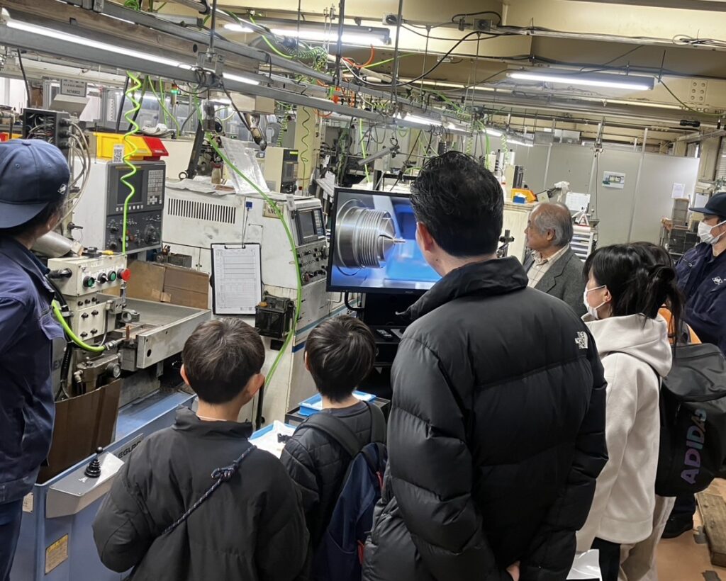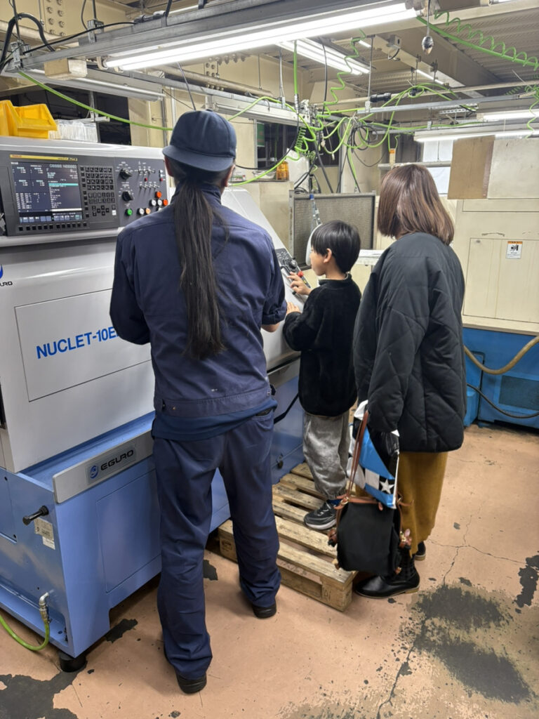 弊社での体験内容は、「歯車のキーホルダー」で、組み立てに使用する金属のネジ作り(旋盤加工)と、キーホルダーの組み立てを致しました。